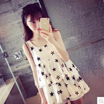 孕婦裝2016夏季新款五角星荷葉邊吊帶雪紡孕婦連衣裙 /