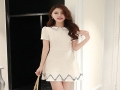 2016韓版夏裝新款 翻領顯瘦氣質短袖 刺繡花連衣短裙女 /