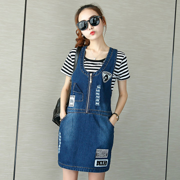 牛仔背帶裙女2016春夏新款韓版牛仔短裙顯瘦牛仔吊帶裙連衣裙 /