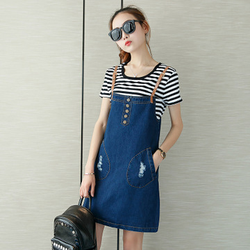 2016春裝新款背帶牛仔裙韓版寬松大碼顯瘦學生吊帶半身裙女 /