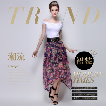 歐洲站2016夏裝新款女裝時尚大牌氣質修身 半身裙大擺裙 長裙 /