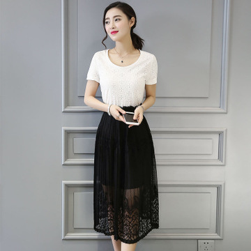 2016夏裝新款韓版修身蕾絲短袖兩件套連衣裙女 /