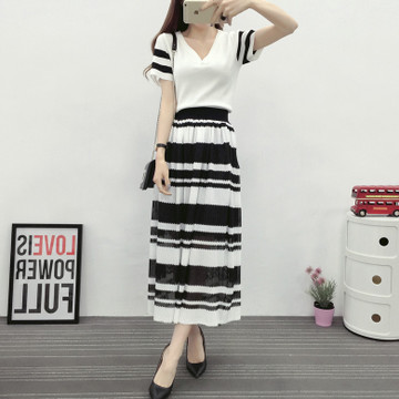 2016夏裝新款波西米亞沙灘裙網眼鏤空黑白條紋半裙中長半身裙 /