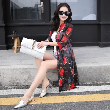 實拍2016夏雪紡衫女開衫韓版大碼空調衫中長款防曬衣女外套 /