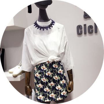 韓國原單2016夏裝新款高檔女裝寬松大碼氣質小清新七分袖雪紡上衣 /