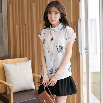 紫衣蕓軒潮流女裝2016新款碎花小清新短袖雪紡女襯衫+短裙兩件套裝 /