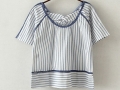 協(xié)雅女裝2016夏季新款女裝圓領(lǐng)短袖條紋拼接休閑百搭卡通刺繡系帶露背T恤 /