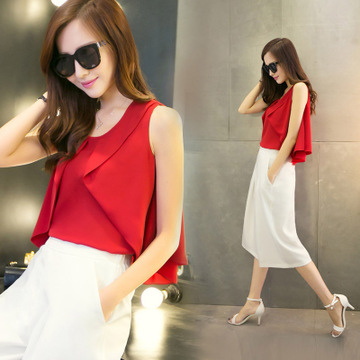 2016夏裝新款韓范時尚氣質無袖雪紡闊腿褲套裝女 /