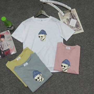 春款韓版寬松卡通人印花棉質短袖T恤女批發(fā)崢ER691 /