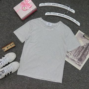 太陽同款新款韓國東大門代購經(jīng)典百搭小清新條紋圓領T恤M971A /