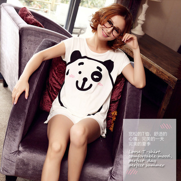 包郵新款夏季清純親膚卡通t恤套裝女裝 運(yùn)動(dòng)休閑熊貓短袖短褲 /