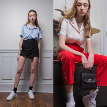 【預售】16春夏新款O!O*同款花朵英文刺繡綢緞面短袖襯衫女睡衣 /