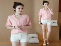2016夏裝新款寬松蕾絲鏤空上衣打底衫女半袖T恤休閑V領短袖雪紡衫 /