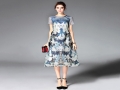 2016夏季新款高檔水晶網布繡花連衣裙 歐美修身顯瘦短袖連衣裙 /