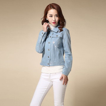 2016春秋裝潮流個(gè)性繡片短款長(zhǎng)袖牛仔短外套 休閑外套 短裝外套女 /