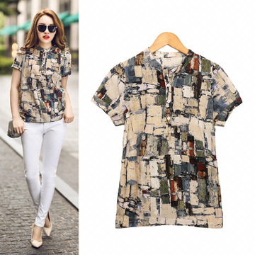胖妹妹加大碼女裝2016夏裝新款韓版顯瘦印花打底襯衫短袖上衣v006 /