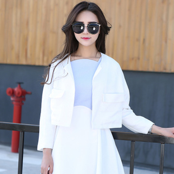 鋼的琴2016春夏裝新款歐美 裸色簡單時尚落肩夾克上衣百搭短外套 /