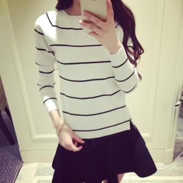 • 2015春秋季新款韓版一字領(lǐng)女式打底衫條紋針織衫罩衫毛衣批發(fā) /