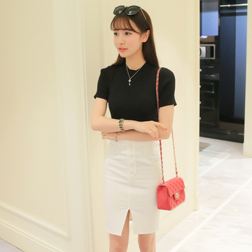 2016夏季新品韓版修身圓領短袖T恤女+性感開衩包臀半身裙套裝女 /