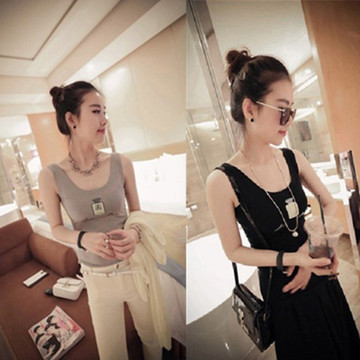 大碼純棉無袖工字背心春夏運動圓U領低胸修身性感小吊帶女打底衫 /