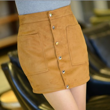 秋冬裝新款韓版百搭時尚鹿皮絨半身裙高腰顯瘦口袋包臀短裙A字裙 /