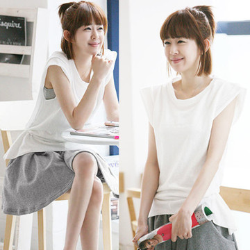 2016夏季新款韓版大碼女裝 白色純棉短袖t恤 女修身上衣松緊腰潮 /