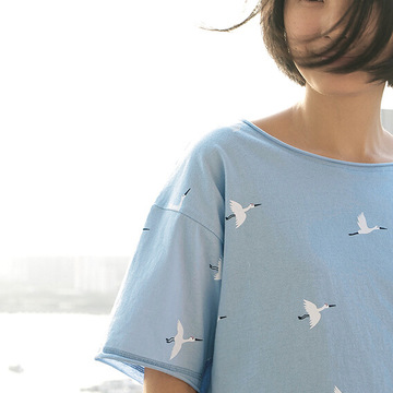 森月一件代發(fā) 復(fù)古百搭 寬松竹節(jié)棉套頭T恤TT-363 /