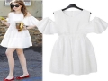 2016夏裝荷葉袖露肩雪紡連衣裙子女短裙大碼顯瘦短袖蓬蓬裙 /