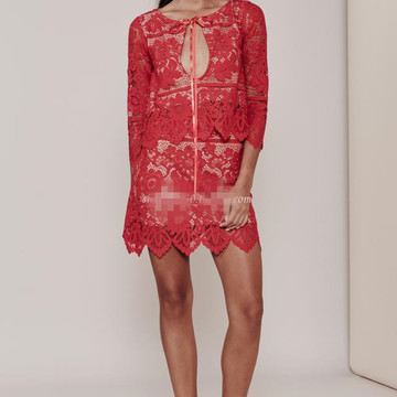 高端定制大牌氣質時尚女神同款2016夏季新品 蕾絲七分袖套裝裙 /