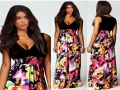 歐美時尚印花長裙Ebay.速賣通.亞馬遜熱賣深V領無袖公主連衣裙 /