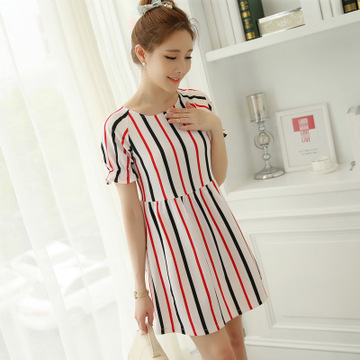 2016夏季新款韓版女裝大碼荷葉袖修身收腰條紋連衣裙女 /