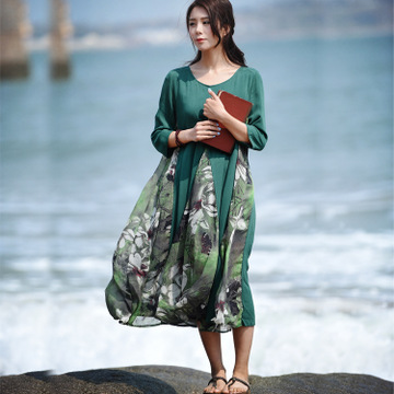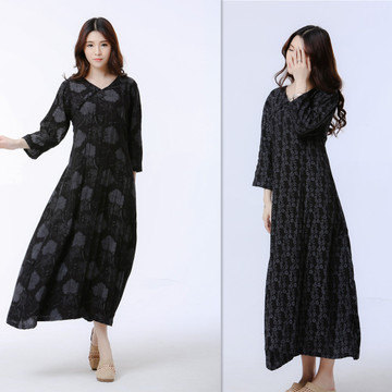 2016春季新款 女裝民族風中長款寬松大擺棉麻九分袖 代理加盟 /