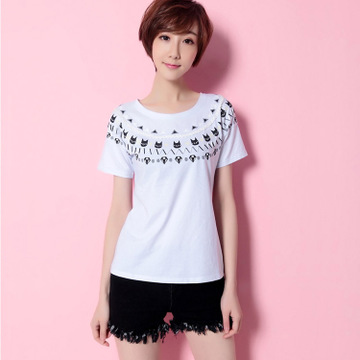 2016夏裝新款韓版女裝全棉百搭修身卡通圓領短袖t恤衫一件代發(fā) /
