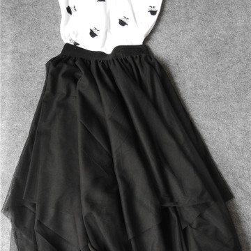 2016年春夏新款 時尚新款純色百搭不規(guī)則設計師款街拍網紗半身裙 /