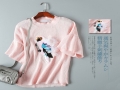 PDE2-高品質(zhì)亮片重工刺繡小鳥夏季女新款木耳領(lǐng)壓折短袖上衣女T恤 /