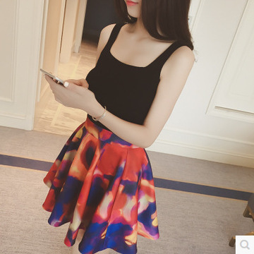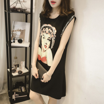 夏季連衣裙2016新款韓版女裝大碼印花釘珠無袖t恤短裙子潮 /