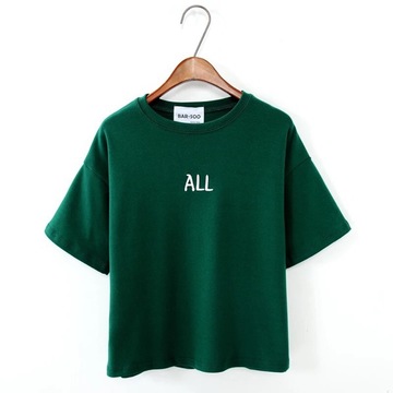 韓國ALL字母簡約半袖體恤衫大碼寬松圓領純棉短袖T恤女款夏 /