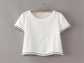 日系女部落春裝新款甜美波浪邊短袖t恤女士白色打底衫棉麻上衣 /