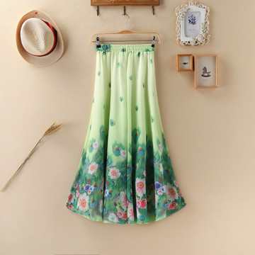 2016春夏新款印花雪紡半身裙女羽毛長裙波西米亞沙灘裙 /