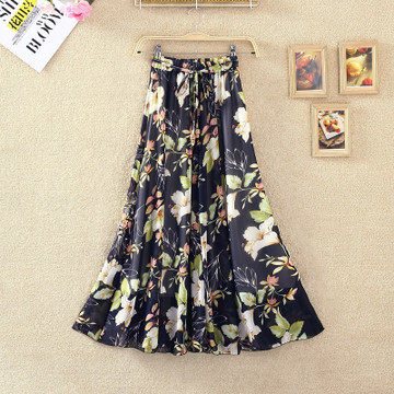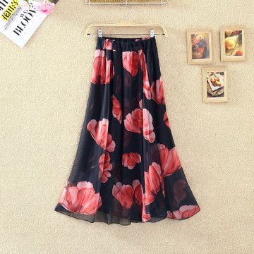 2016春夏新款女裝田園碎花大擺裙雪紡大碼長裙半身裙 /