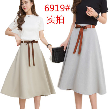 2016夏新款復(fù)古學(xué)院風(fēng)百搭棉麻中長款半身裙中裙傘裙大擺 /