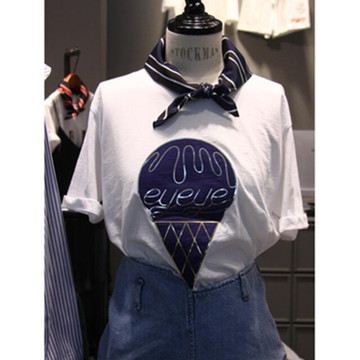2016夏裝新款韓版竹節棉t恤女短袖休閑寬松時尚印花上衣 /