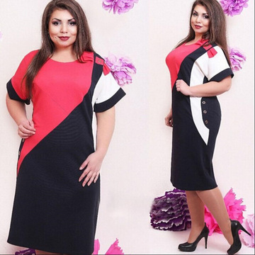 爆款胖MM大碼歐美女裝修身包臀撞色拼接連衣裙 /