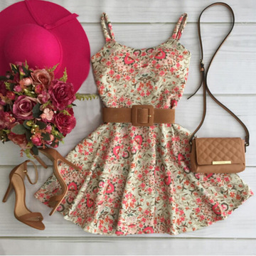 最新吊帶印花連衣裙無袖短裙新款歐美風女裝貨源 /