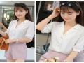 太陽(yáng)的后裔宋慧喬同款襯衫2016寬松韓版明星新款珍珠雪紡衫 /