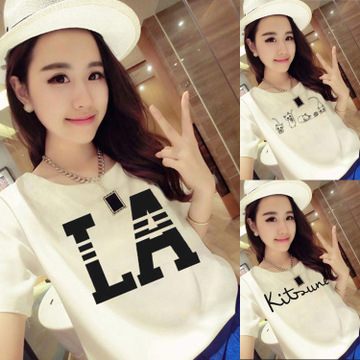學(xué)生寬松字母半袖姐妹t恤衫閨蜜裝夏季韓版t恤女款女短袖t血潮 /