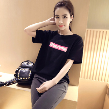 2016夏季新款韓版學(xué)生寬松大碼字母印花圓領(lǐng)短袖簡約氣質(zhì)女士T恤 /