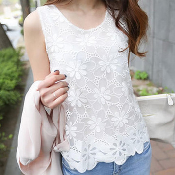 2016年夏韓版短款打底吊帶衫春無袖工字蕾絲雪紡背心女士夏外穿潮 /