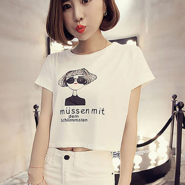 2016夏季新款韓版女裝短款印花寬松短袖上衣學(xué)生打底衫女士T恤衫 /