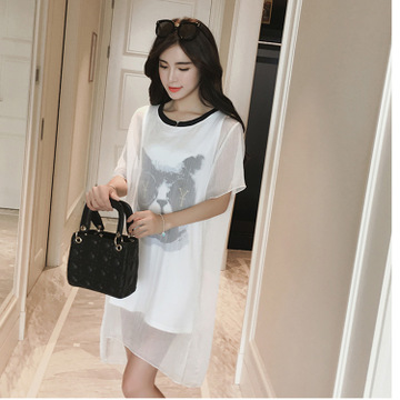 2016夏裝時尚新款女裝 200斤雪紡衫胖mm加肥加大碼圓領短袖連衣裙 /